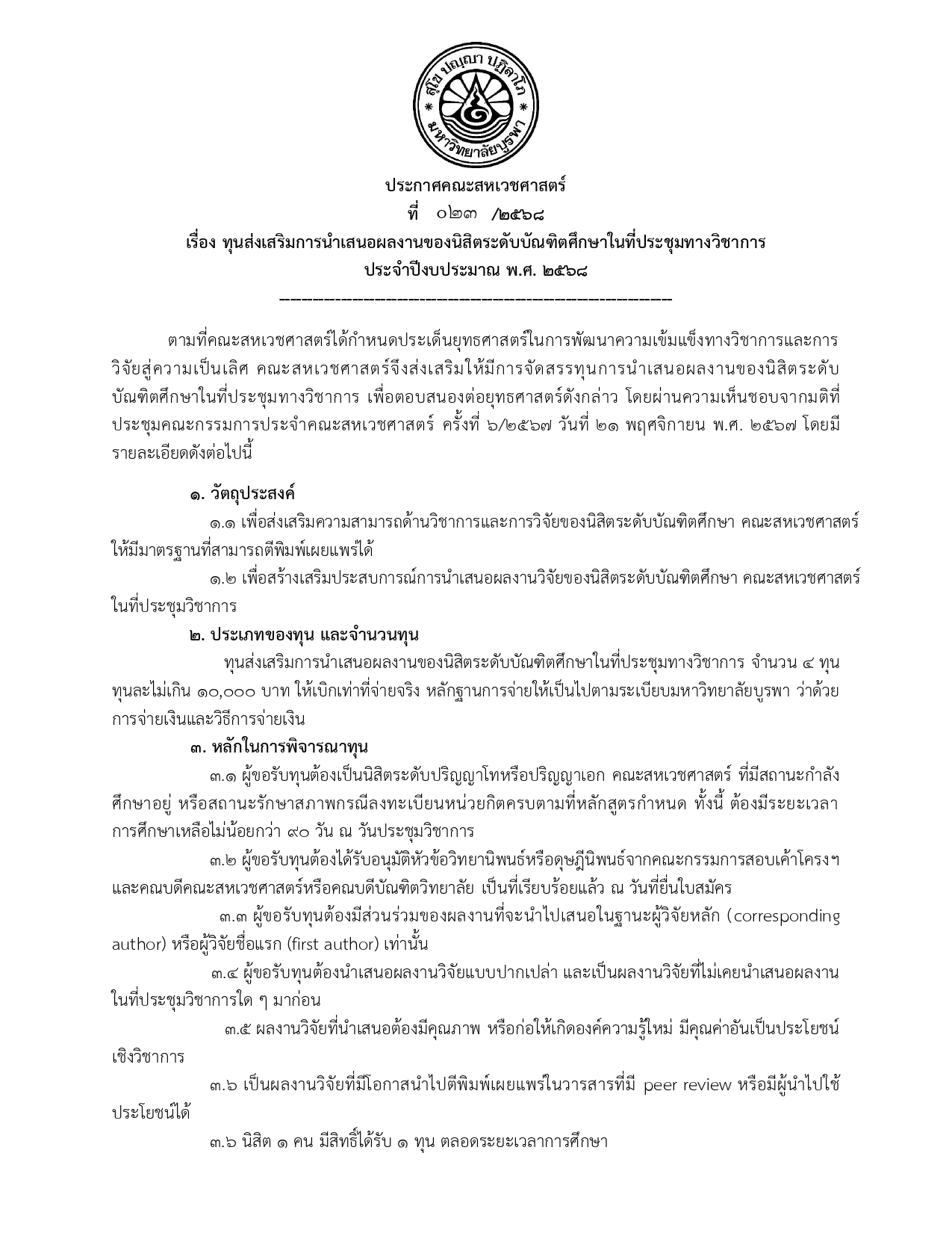 หน้าหลัก ข่าวประชาสัมพันธ์ รายละเอียด ประกาศทุนนำเสนอผลงานบัณฑิต ประกาศทุนนำเสนอผลงานบัณฑิต ประกาศวันที่ : 25 เมษายน พ.ศ. 2568, โดย : กิคคิ