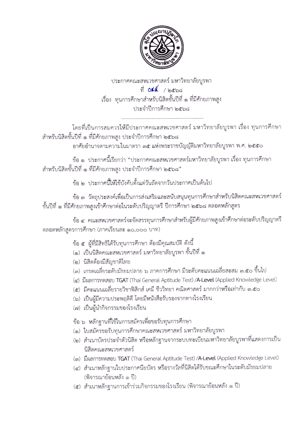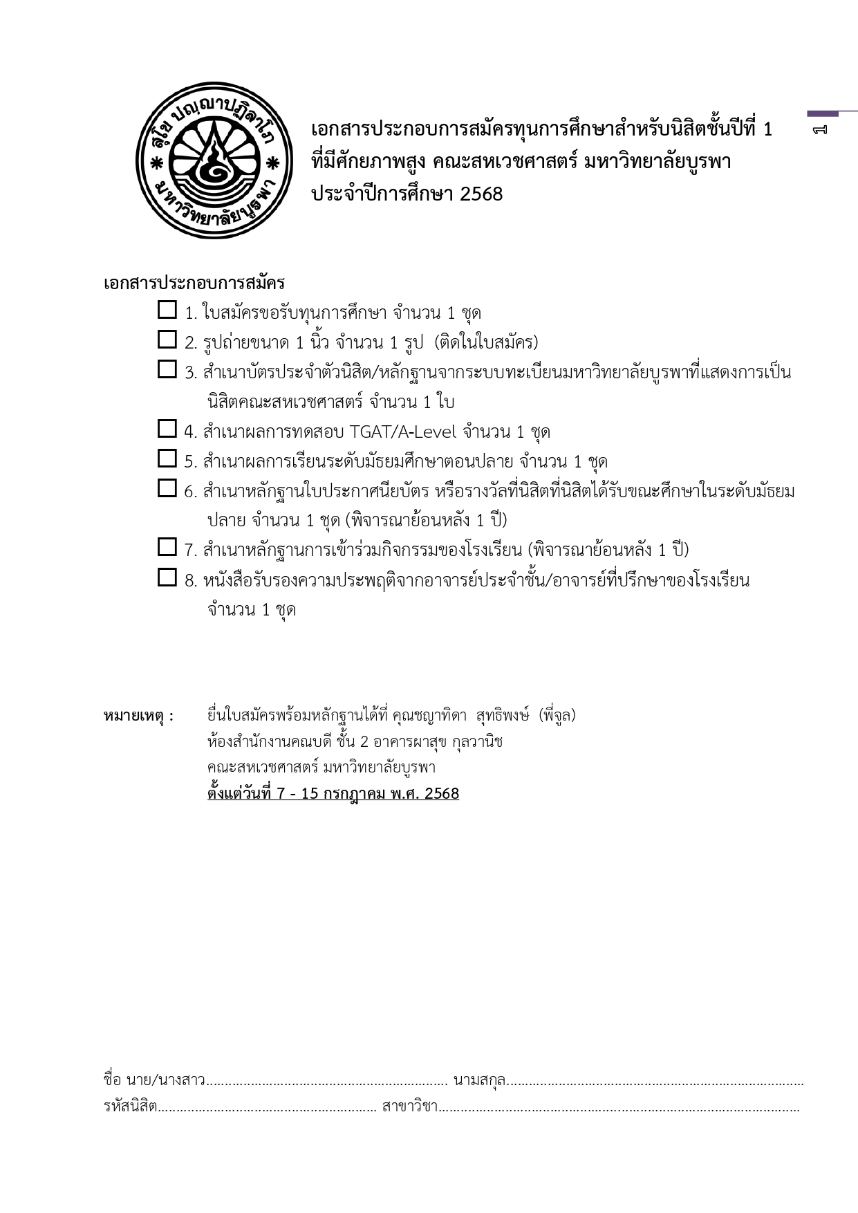 ประกาศรับสมัครทุนการศึกษา คณะสหเวชศาสตร์ ทุนการศึกษาสำหรับนิสิตชั้นปีที่ 1 ที่มีศักยภาพสูง