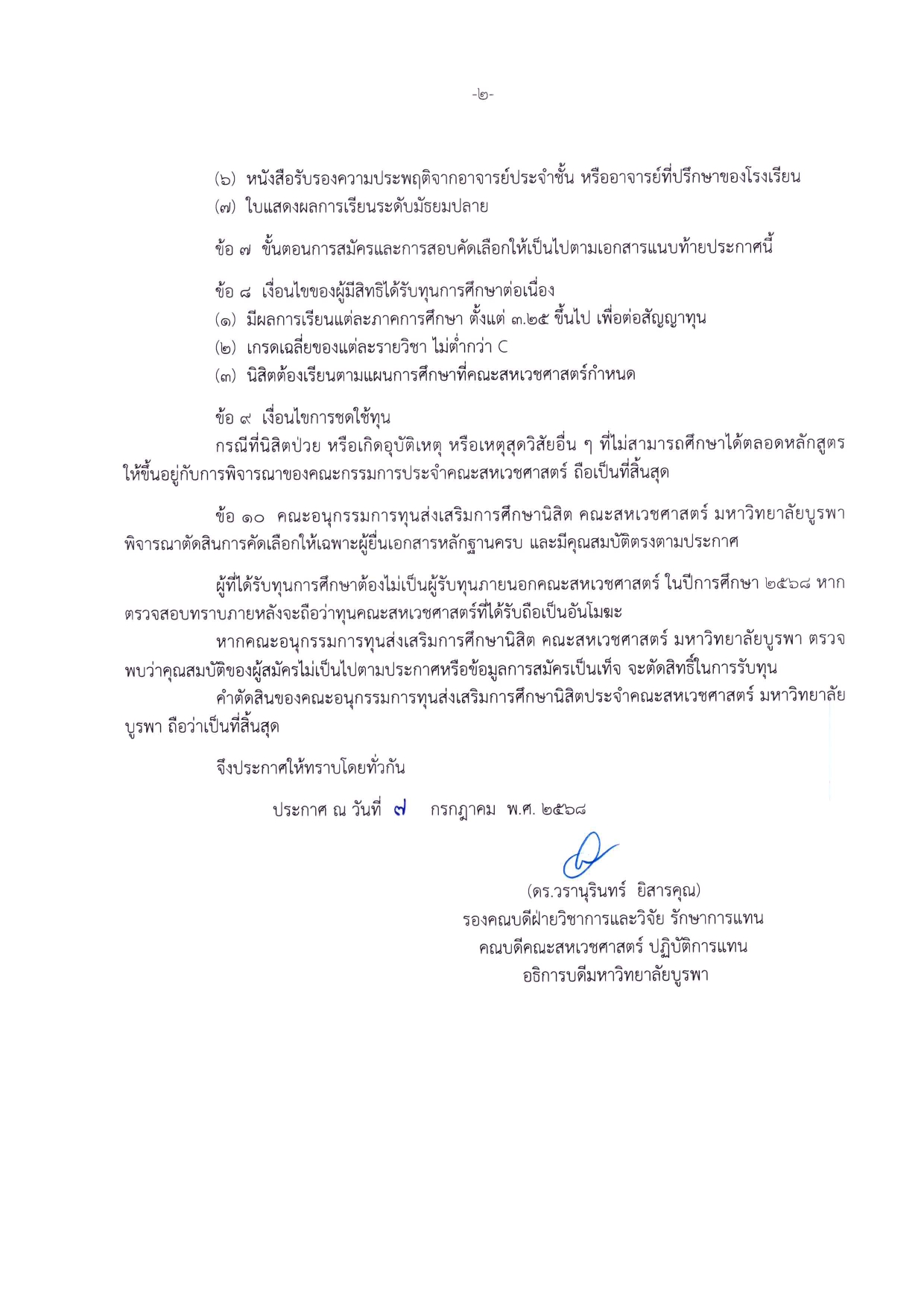 ประกาศรับสมัครทุนการศึกษา คณะสหเวชศาสตร์